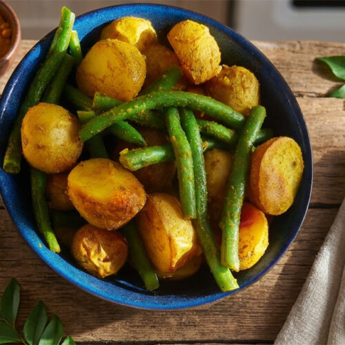 Aloo and Beans is one of those quietly comforting dishes that feels both homely and deeply flavourful — tender gourmet baby potatoes, halved so they soak up every spice, paired with crisp, bright green beans that keep their snap. As they cook together, the aroma of freshly ground cumin drifts through the kitchen, earthy and warm. Turmeric adds its golden glow, red chilli brings gentle heat, and garam masala rounds everything out with a soft, fragrant depth. A sprinkle of dry mango powder introduces a tangy edge, while lemon juice and cracked black pepper lift the whole dish into something lively and balanced. It’s simple, rustic, and full of character — the kind of everyday cooking that feels nourishing and satisfying.