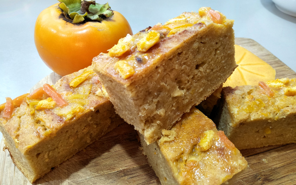 From a health perspective, this recipe is packed with benefits. Persimmons are rich in dietary fibre, supporting healthy digestion and steady energy release. They’re also loaded with antioxidants — particularly vitamins A and C — which help support immune function, skin health, and overall vitality. Almonds contribute vitamin E, plant‑based protein, and minerals such as magnesium, which plays a role in energy production and muscle function. Brown rice flour and corn flour offer complex carbohydrates that keep you fuelled without the blood‑sugar spikes associated with refined flours.