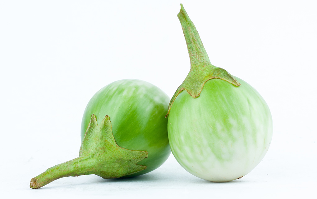 • Thai eggplant provides dietary fibre, potassium, manganese, and antioxidants that support digestion, heart health, and overall vitality. You can often find it in the freezer section of your local Chinese grocer.